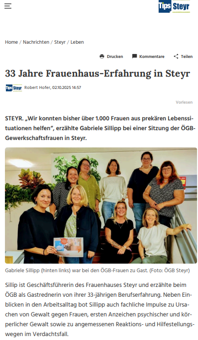 Startseite2025Oktober2025: 33 Jahre Frauenhaus-Erfahrung in Steyr 2025: 33 Jahre Frauenhaus-Erfahrung in SteyrVon Frauenhaus / Oktober 3, 2025 Oktober 2025